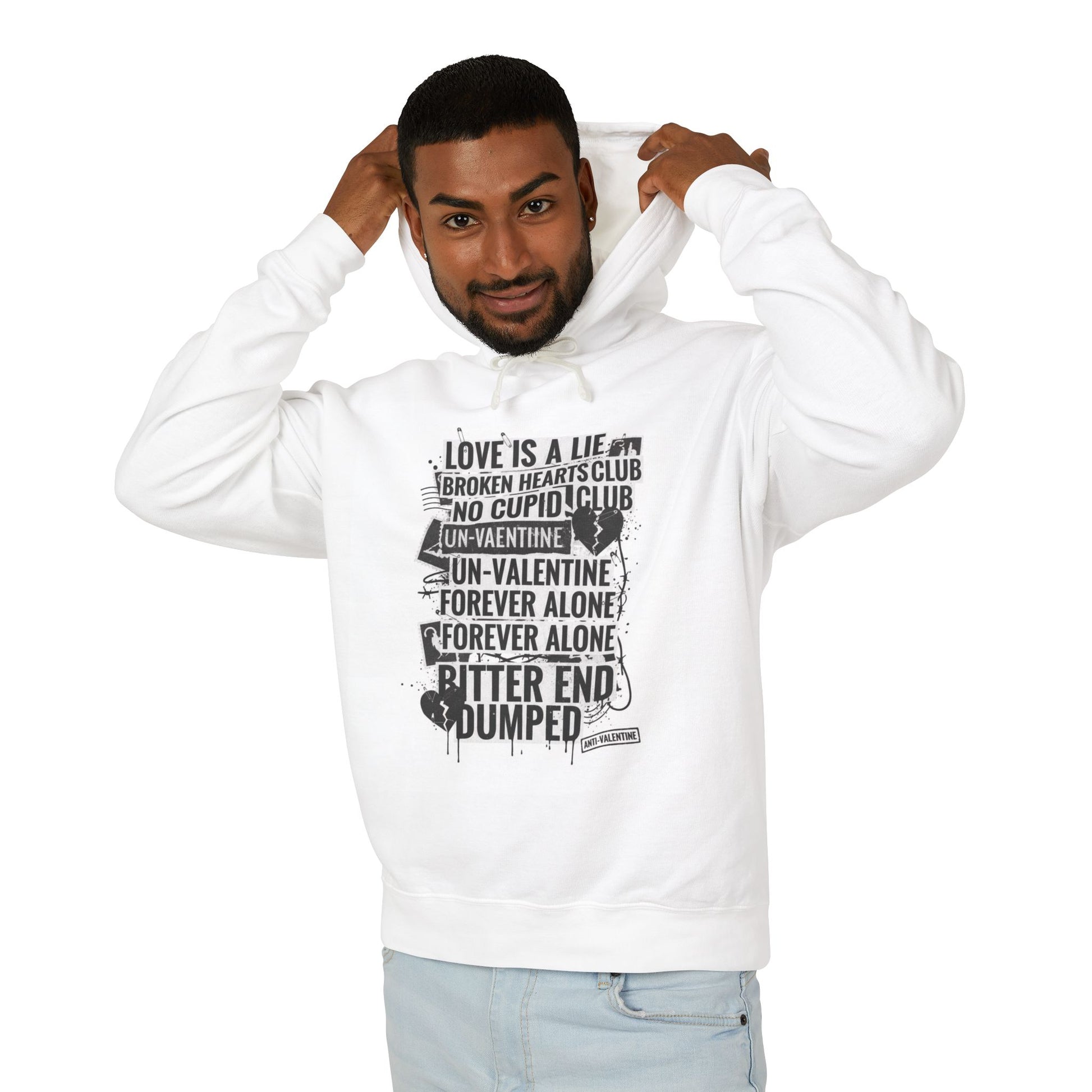 Anti-Valentine Hoodie — 'Love Is a Lie / Forever Alone' Graphic Sweatshirt